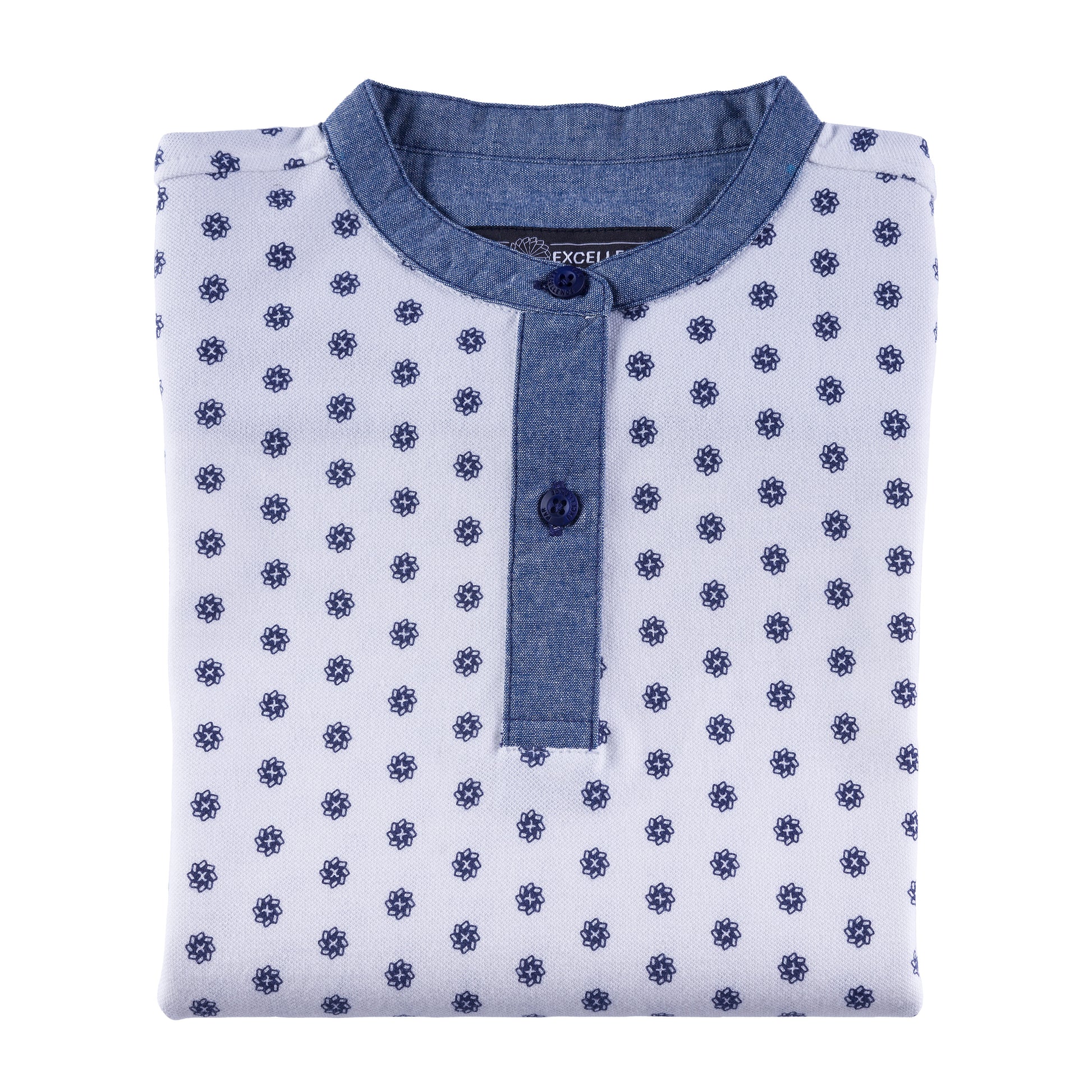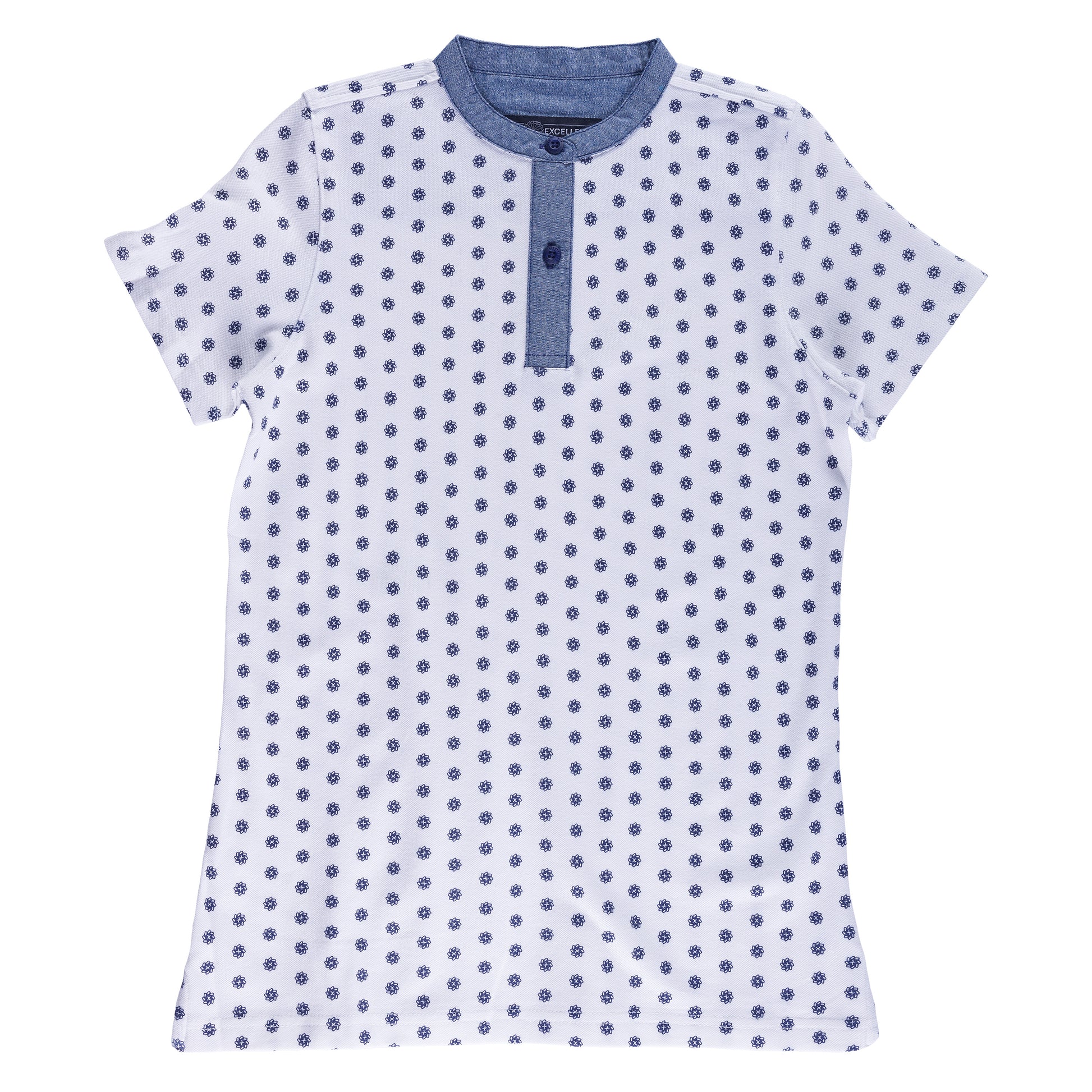 Inspired by the most winningest golfer in LPGA Japan, Hisako “Chako” Higuchi, the Chako XW is a banded collar henley utilizing the distinctive White - Eclipse X Wheel Printed Pique. The short sleeve length allows for a wide range of motion while the contrast Blue Chambray collar provides a refined touch. This style coordinates with the Neale visor or the Ben XW Clubhouse Cap.