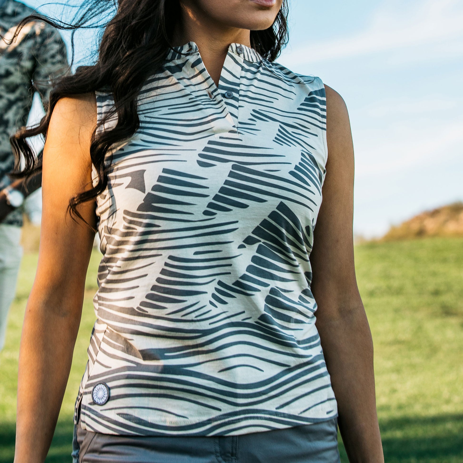 First Japanese golfer inducted into World Golf Hall of Fame Hisako “Chako” Higuchi is the inspiration behind this style. The Chako SL WV utilizes a 40 singles jersey that is super lightweight and promotes ventilation. The sleeveless design provides open movement. The allover print graphic is in a Bone - Filigree colorway. It can be paired with the Jesper WV Cap.