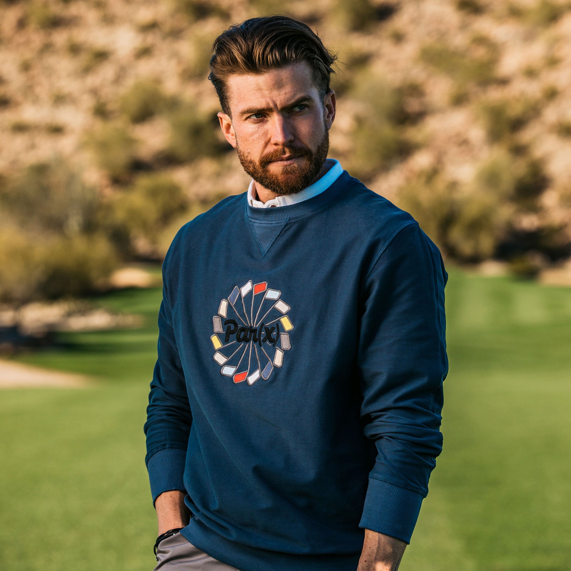 With this style we pay tribute to Robert “Lee” Elder, 1st African American to compete in The Masters.The Lee embroidered graphic crew updates the classic sweatshirt in Par X’s Reverse Twill Knit Fabric. A unique sleeve design with a set-in front and raglan back allows for an unrestricted swing. Featured in Vindigo the Lee is also available in Filigree.