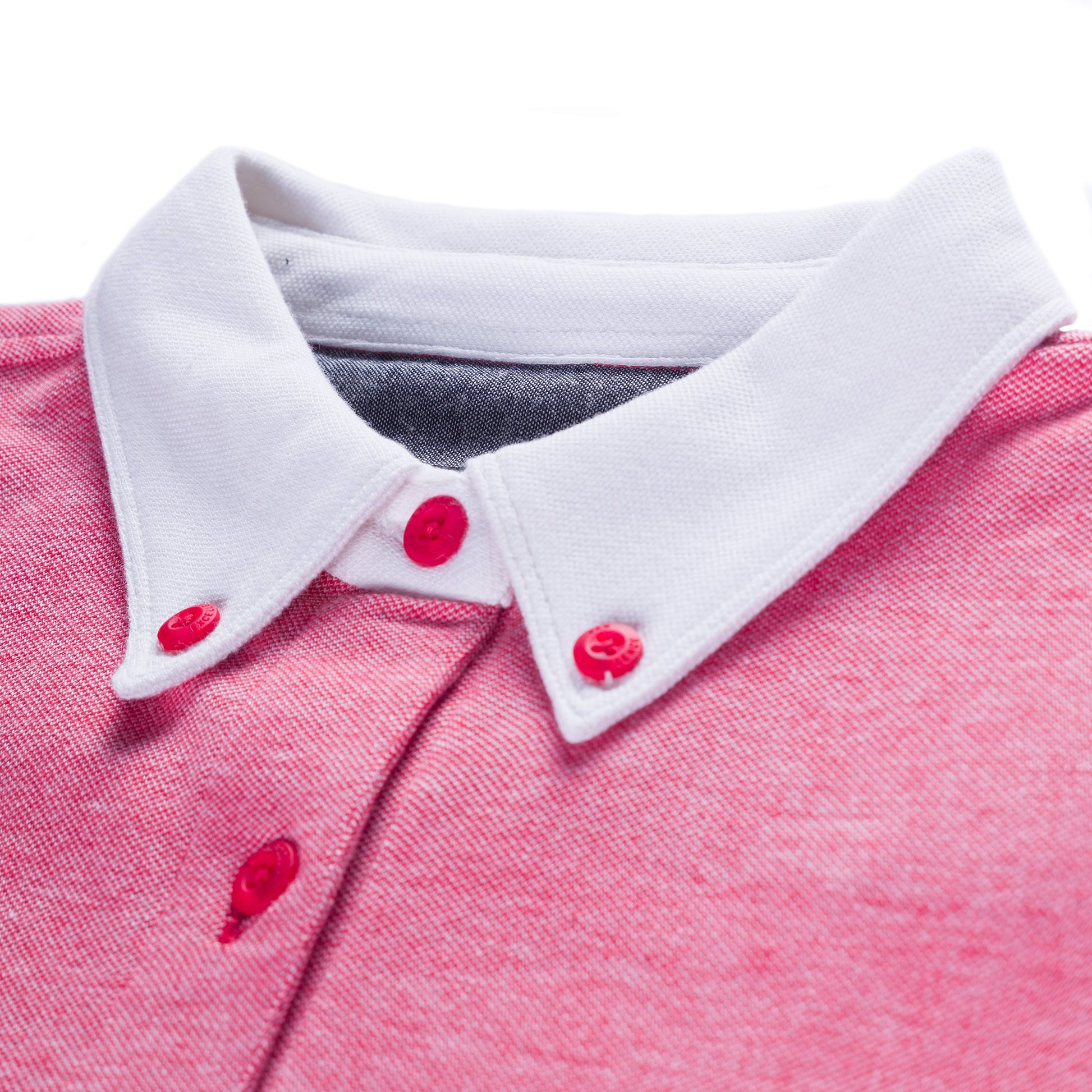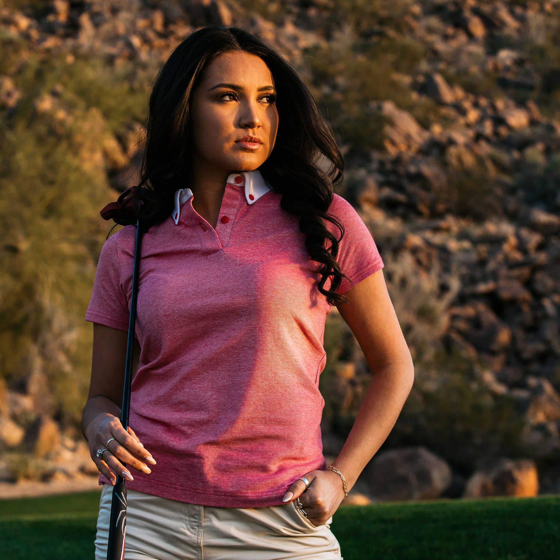 With this style we pay tribute to Lorena "Ochoa" Reyes, LPGA Hall of Fame Inductee and 3 Time Rolex Player of the Year.The Ochoa introduces our stretch cotton yarn dye pique into a women’s style polo. The button down collar evokes classic prep style. The Ochoa is offered in Eclipse or JV Red. The two tone body coordinates to many caps in the collection.