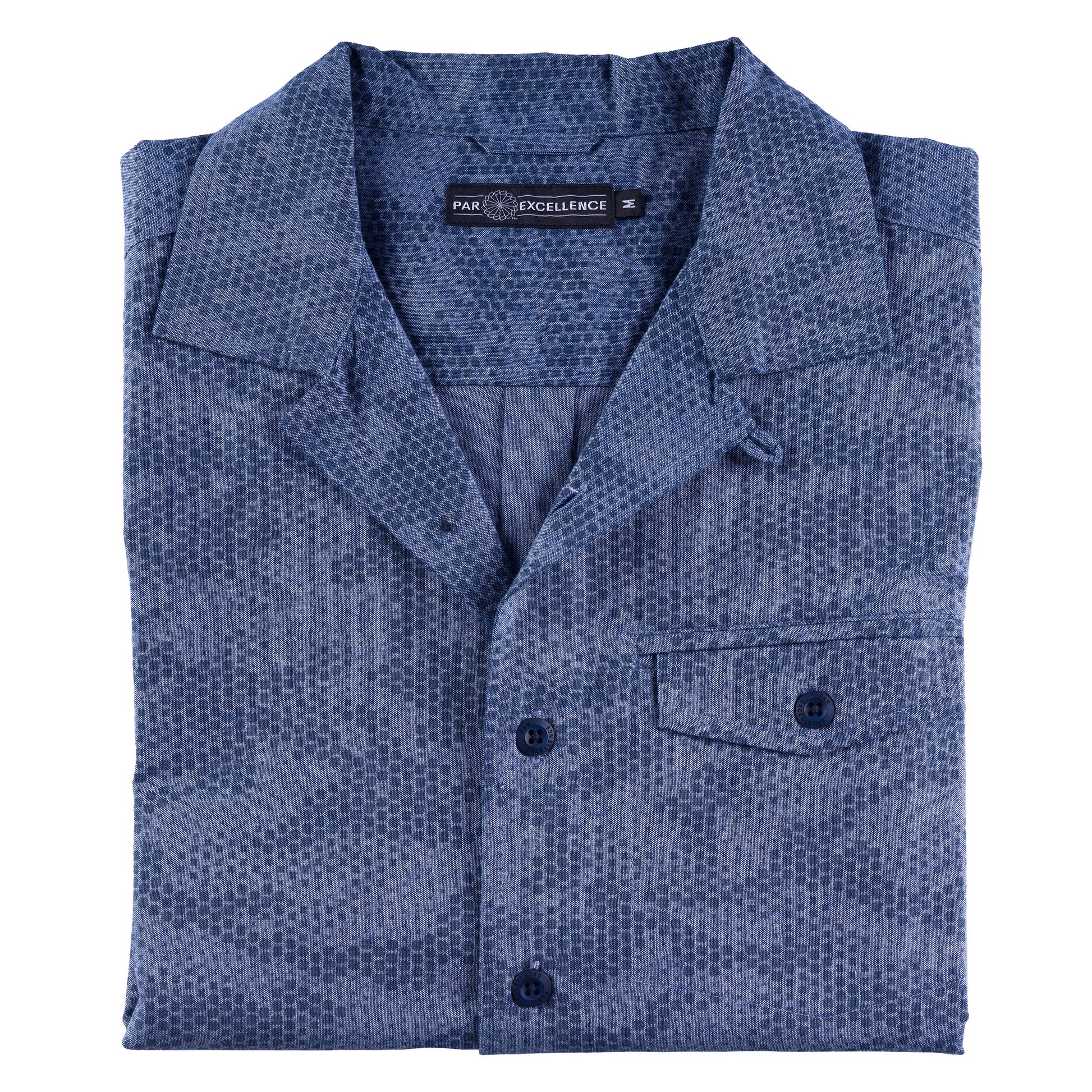 With this style we pay tribute to Gene “Squire” Sarazen, one of only five Grand Slam of Golf Champions. Made in our signature X Camo chambray, the Squire XC camp shirt is the perfect top on the course or apres-golf. Available in Black or Blue Chambray the Squire can be dressed up or worn casual.