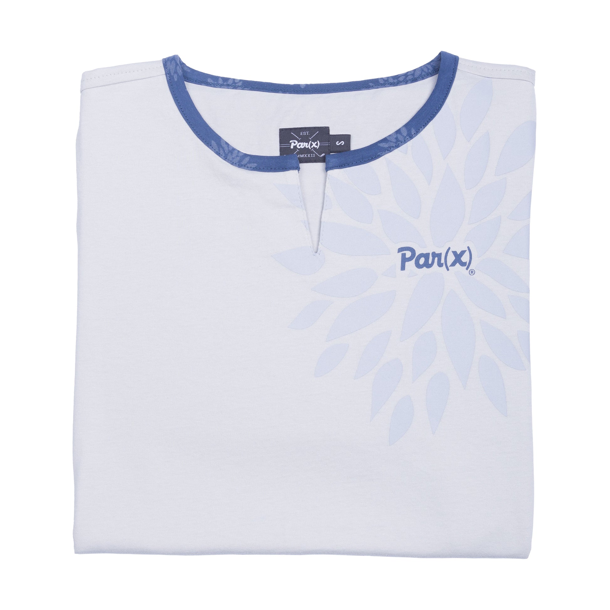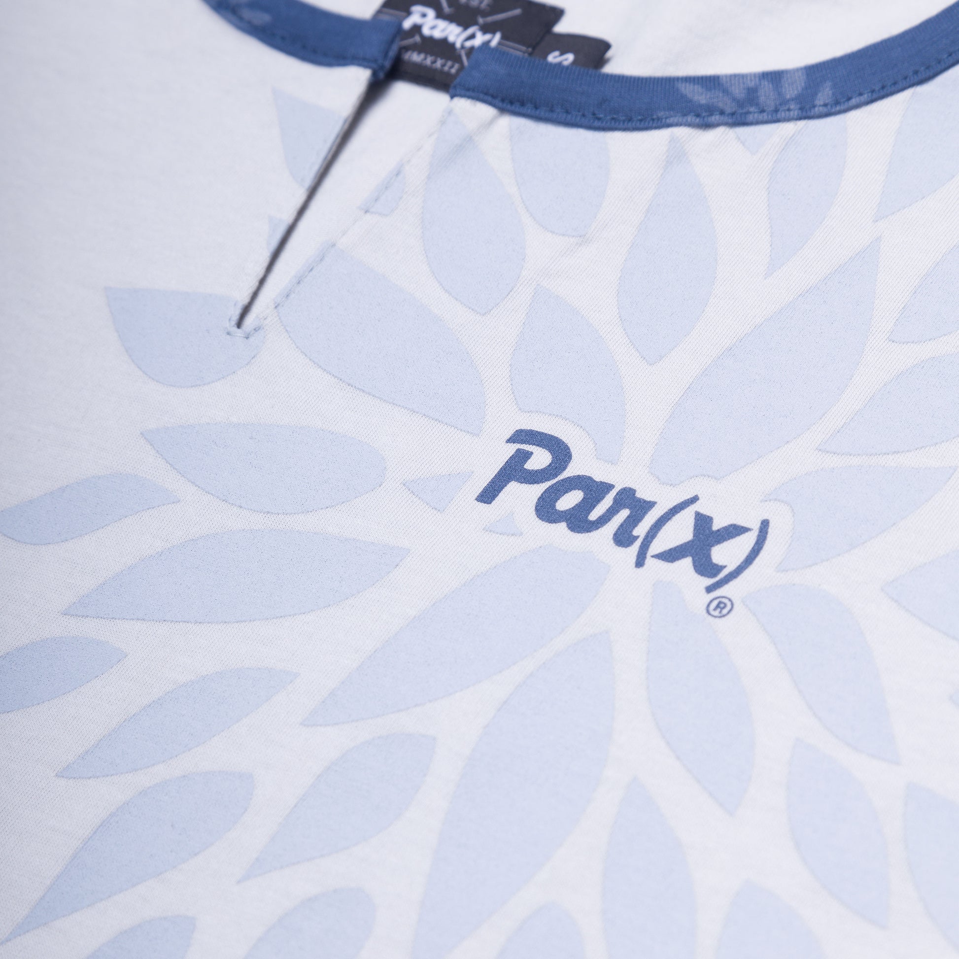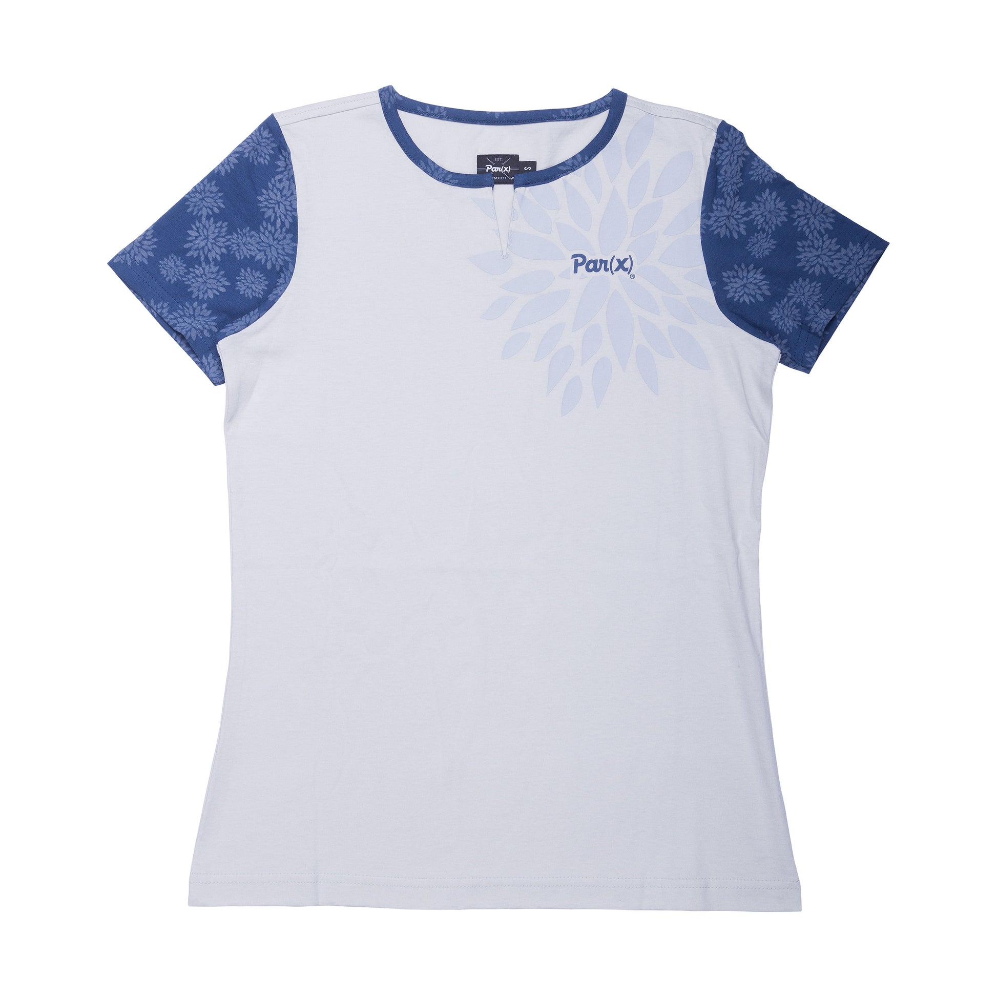 Eight time Player of the Year Annika "Miss59" Sörenstam is the inspiration behind this style. The Miss 59 is a playful version on our women's graphic tee. The neckline features a split neck crew. The sleeves feature a laser printed floral pattern and an assymetrical graphic placement accents the front shoulder.