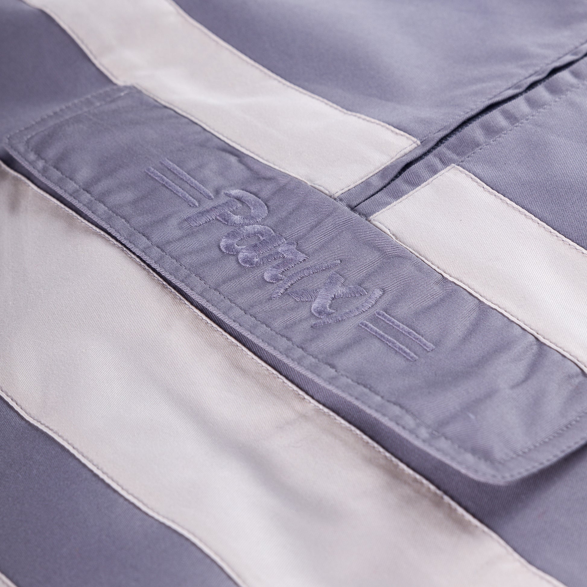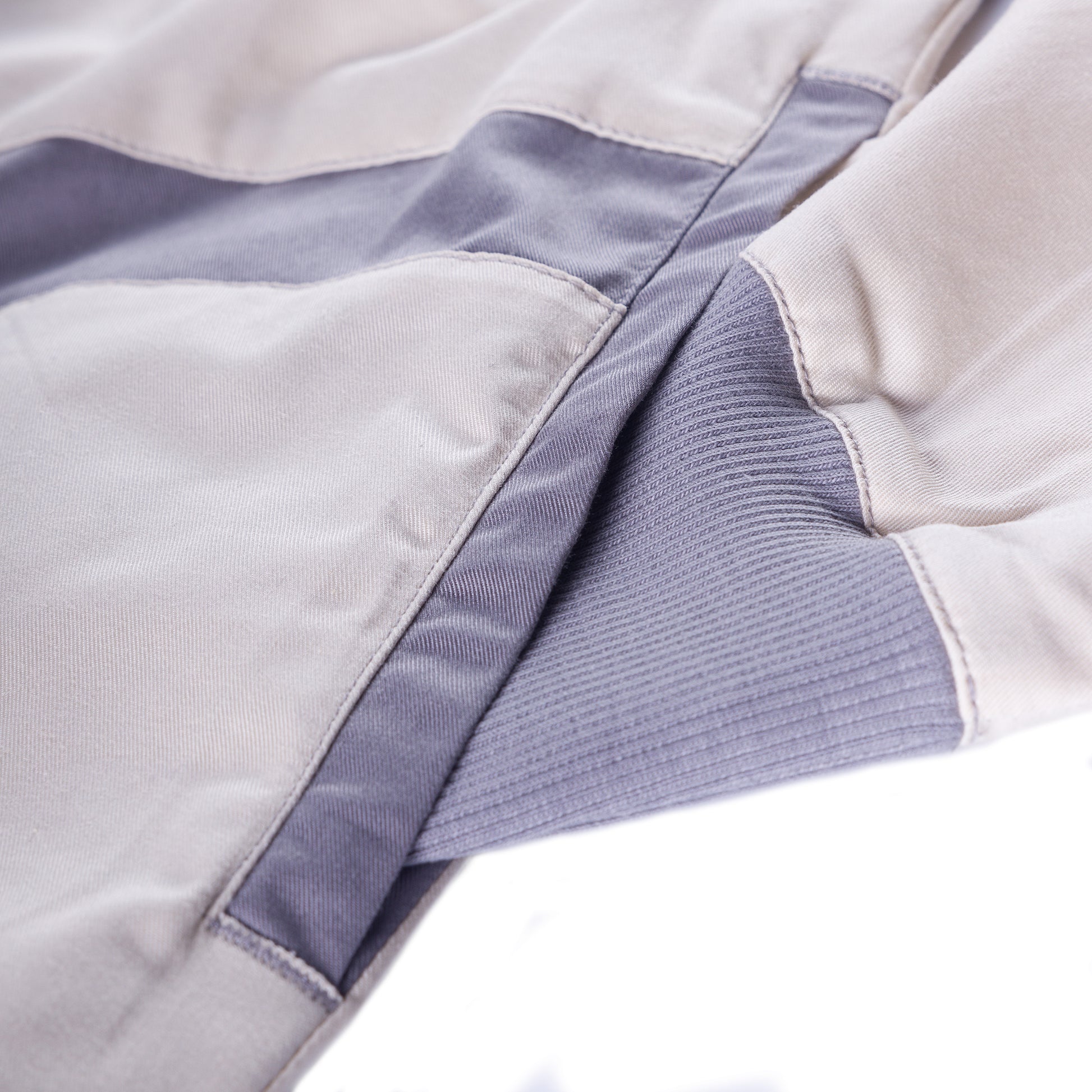 • 97% Cotton 3% Spandex Stretch Twill in a Thick-to-Thin striped panel design at the torso and sleeves